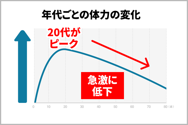 ※イメージ 文部科学省:加齢に伴う新体力テスト合計点の変化(男子)2015年